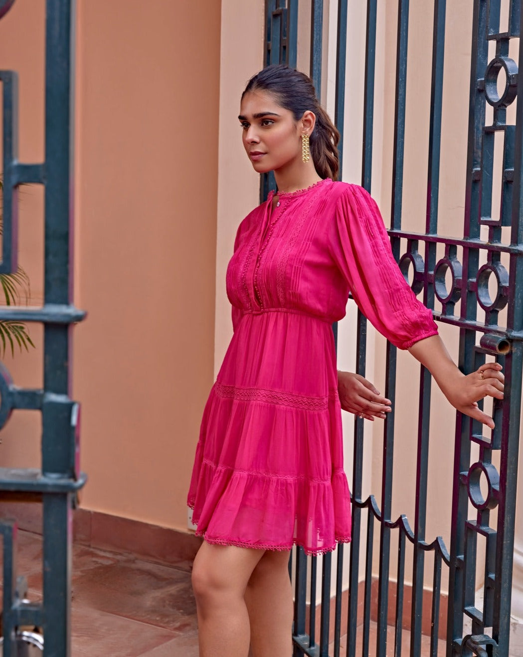 The Andy Mini Dress is a versatile piece that can be dressed up or down depending on the occasion. Pair it with strappy heels and statement jewellery for a glamorous look, or dress it down with a denim jacket and sneakers for a more casual vibe. With its vibrant pink colour and exquisite lace details, this dress is sure to make you feel like the belle of the ball.